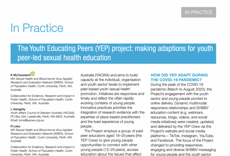 The YEP Project conducts its own research into the needs of young people and communities within Western Australia. Every year we survey young people and members of the youth sector about what topics they feel are most relevant to them and their sexual health, their perceptions and opinions about sexual health, and mediums of communication for education. This research guides our content creation, development and workshop delivery. By doing this we can ensure we are meeting the needs of young people and are ever evolving. The results of our surveys and other research are collected here, for the benefit of youth workers or fellow young people who may be interested in what the community has to say.